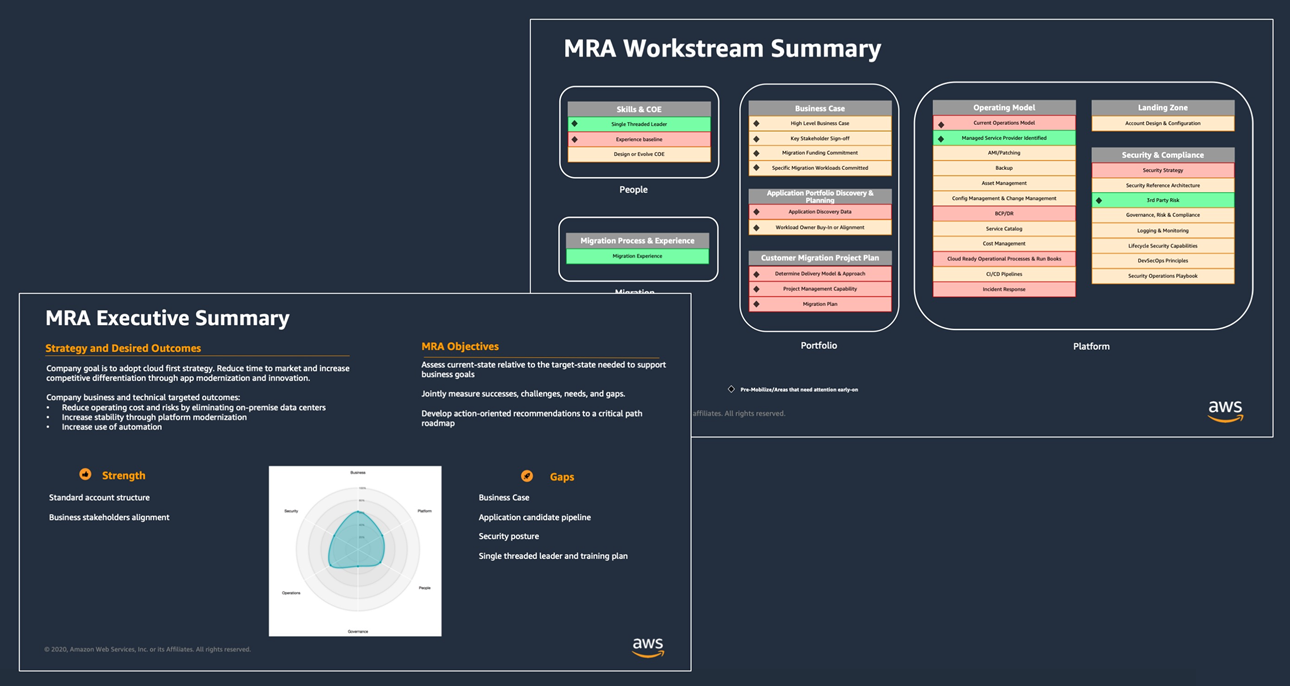 - Partners who’d like to run the workshop on their own can leverage the Migration Readiness Assessment (MRA). All resources, artifacts, and the MRA platform are available via AWS Partner Central (login required).