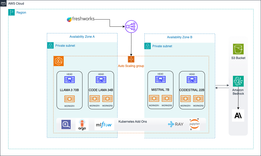 CloudVerse, developed in collaboration with AWS, enabled Freshworks to accelerate building generative AI applications on AWS. Read on to learn more about how AWS enabled Freshworks to leverage AIaaS offerings and helps them stay ahead of the curve with various services, including Amazon EKS, AWS Lambda, and Amazon Bedrock.
