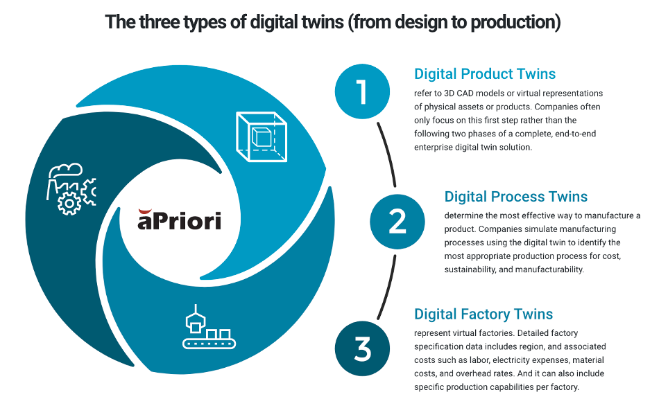 Figure 1 – aPriori’s digital twins for product development lifecycle management.