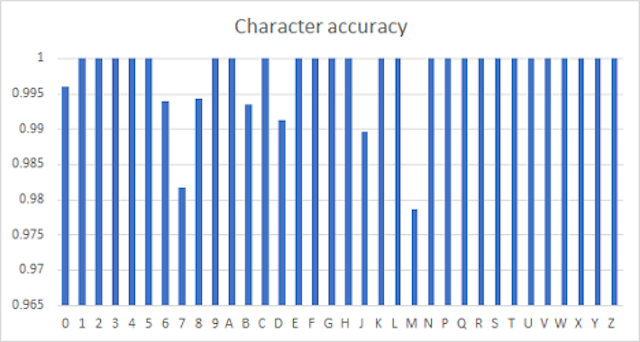 Figure 4: Training examples and accuracy on the hold out test set for each car plate digit