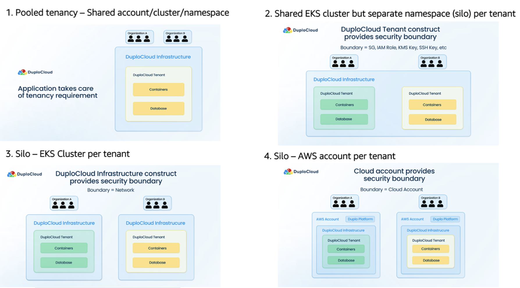 The DuploCloud platform helps address tenant isolation requirements using these four models:
