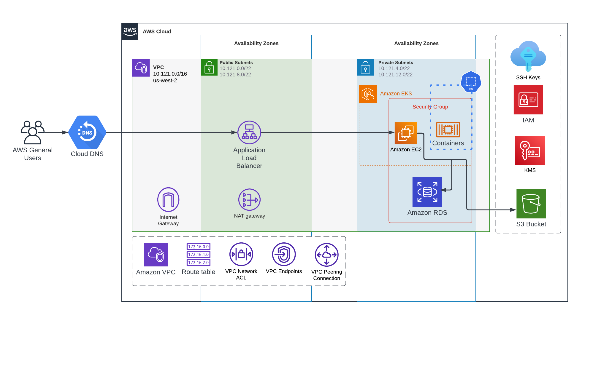 - Infrastructure – Each Infrastructure is a unique Amazon Virtual Private Cloud (VPC) and Amazon Elastic Kubernetes Service (EKS) cluster, in a given AWS region