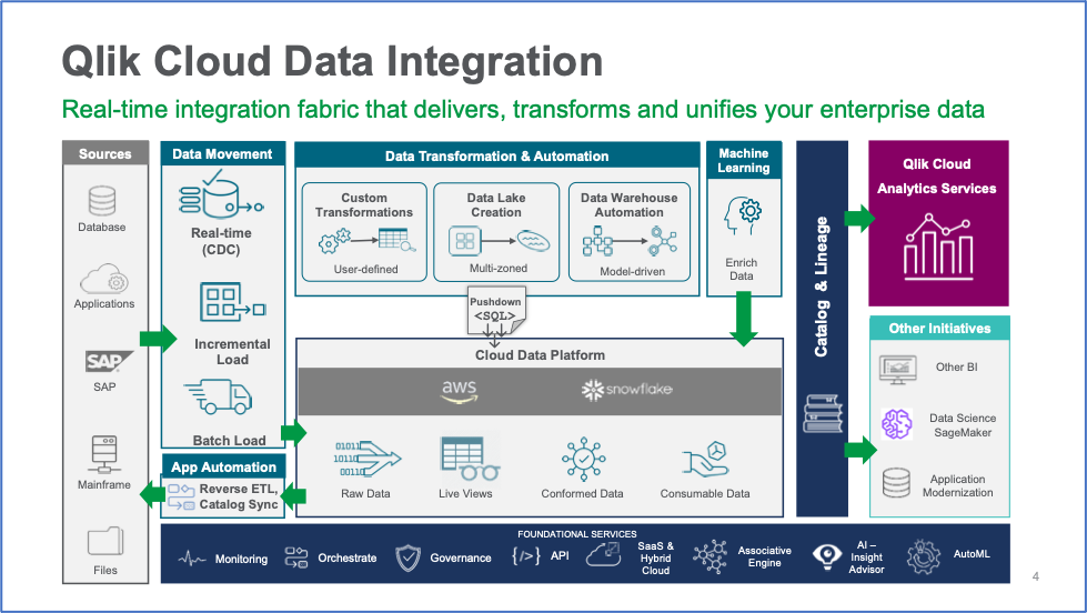- A strong tech partner ecosystem, providing best-of-breed products in each data category: data integration, data governance, BI, data observability, AI/ML. Qlik is a Snowflake Elite Partner.