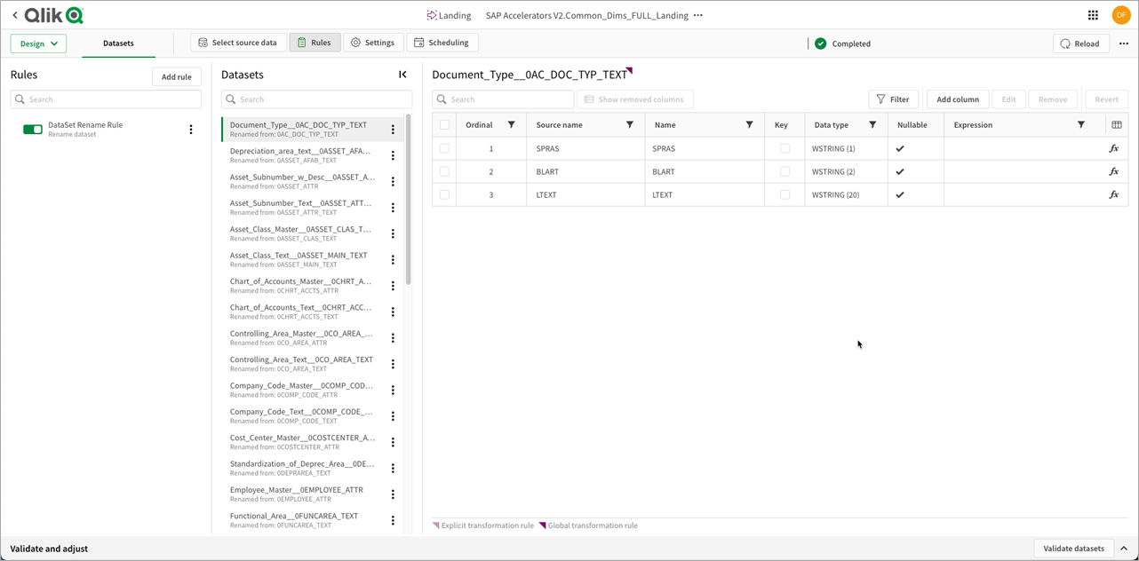 You may notice there are a lot of rules. We have run a report in SAP to extract all of the metadata by extractors, but not all names are the same. KUNNR is ship-to-customer in one extractor and sold-to-customer in another, for example.