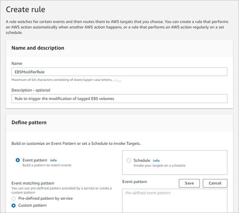 In this step, you’ll create the trigger that listens for changes to tags on your EBS volumes and causes the Systems Manager Automation to execute.