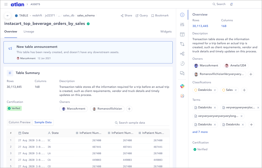 Figure 6 – Enriched table assets from Amazon Redshift in Atlan.