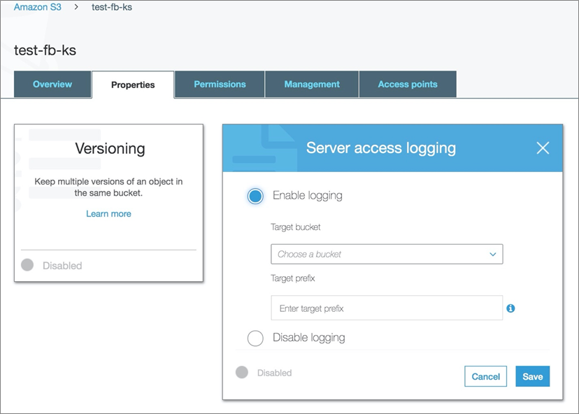 Figure 4 – Enable server access logging for the S3 bucket.