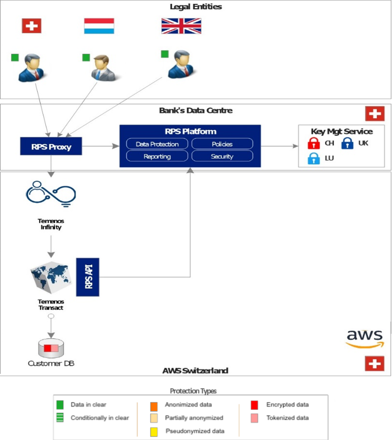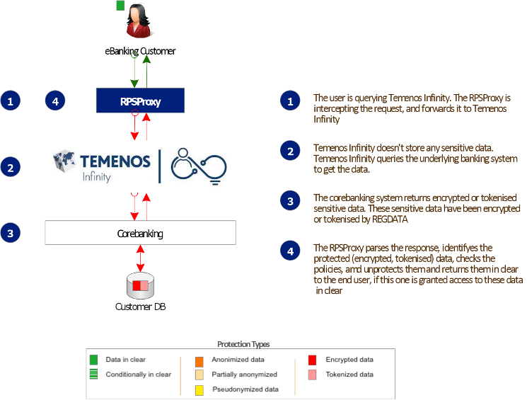 – Temenos Infinity: The RPSProxy dynamically protects and unprotects confidential customer data (CIDs) when accessed through a SaaS Temenos Banking Portal and Mobile application.