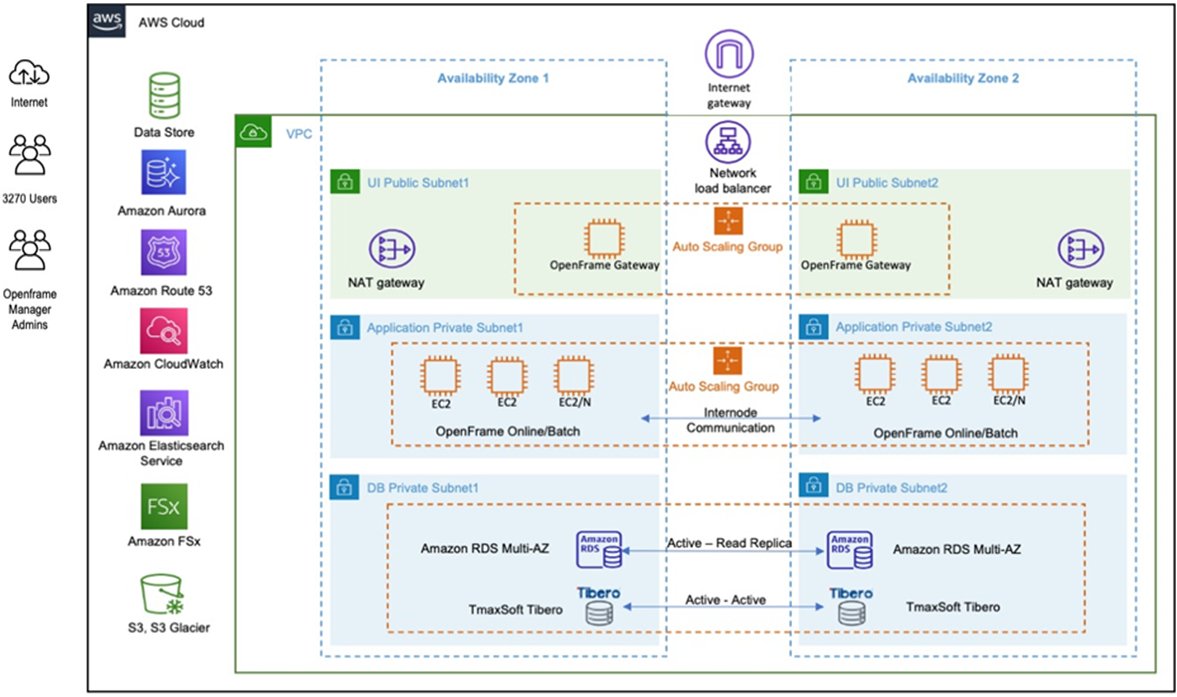 TmaxSoft OpenFrame increases agility and flexibility, enabling you to configure active clustering on your AWS environment. This serves as the foundation for the highly available and scalable solution in this always-on world.
