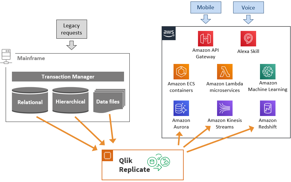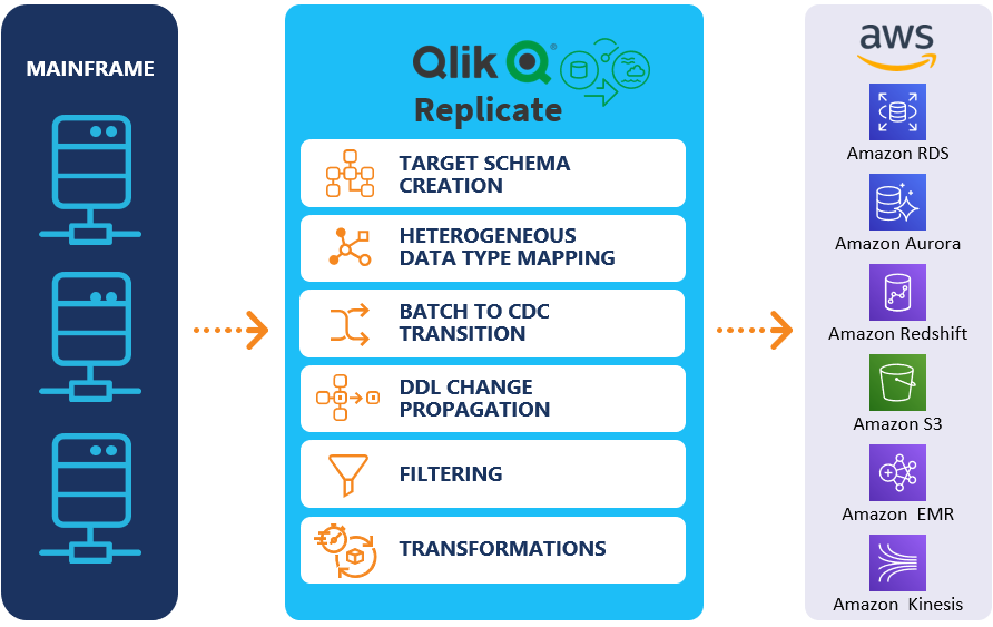 Qlik is an AWS Competency Partner. Qlik Replicate uses real-time data streaming to put mainframe core-business data onto AWS that is ready for data analytics and innovative services.