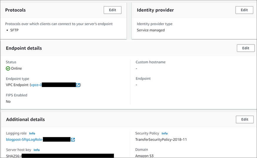 - AWS Transfer Family is a managed service that provides SFTP endpoints that present S3 buckets to clients and performs authentication. We’ll use private endpoints that allow only private connections to the SFTP server. Note that FTP access is also possible in private mode even if this protocol is not encrypted, and should be avoided for a security concern.