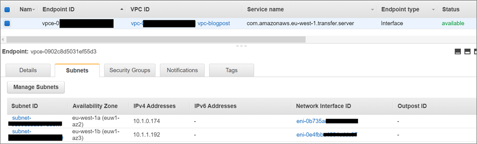 Next, we’ll create the SFTP VPC endpoint that users will connect to.