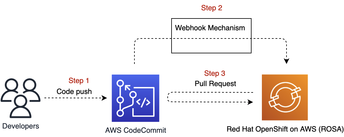 Full integration of Red Hat OpenShift on AWS (ROSA) with AWS CodeCommit allows customers to keep their code and CI/CD pipelines within AWS in a fully managed environment.