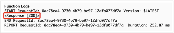 As we can see in the output, it has taken 252.87 milliseconds for the Lambda function to invoke the webhook URL and print the 200 HTTP response: