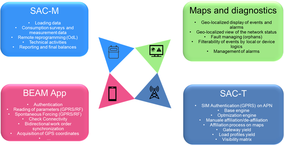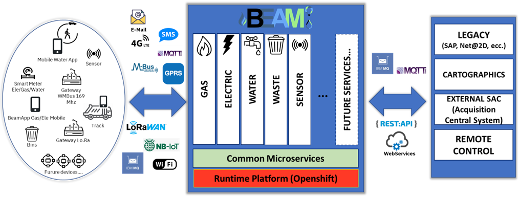 BEAM IoT was born as an integrator of the data required for complete “remote reading” and “remote management” of the field equipment in the gas, water, and electricity domains. It was subsequently extended to environmental management (waste collection and delivery, street sweeping) and to the management of additional IoT devices.