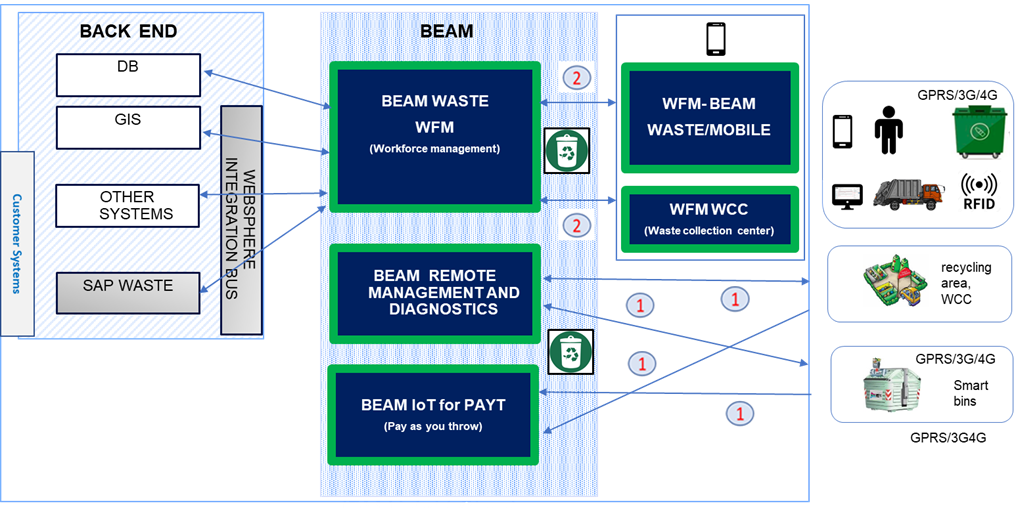BEAM IoT also offers waste service managers graphical tools for analyzing raw and aggregate data to improve the services performed. These features are offered by BEAM IoT for PAYT module, which collects business metrics related to separate waste collection. The BEAM Diagnostic Remote Management module collects the technical data related to separate waste delivery, and offers monitoring and remote management functionalities.