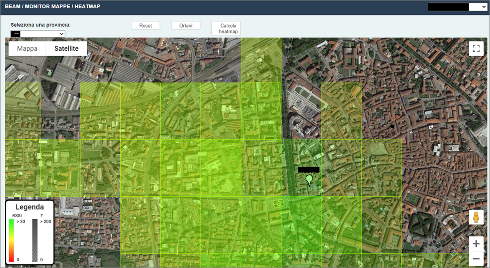 The image in Figure 6 below is an example of a “heatmap” dashboard, which shows 169 MHz WMBus network coverage on the field.