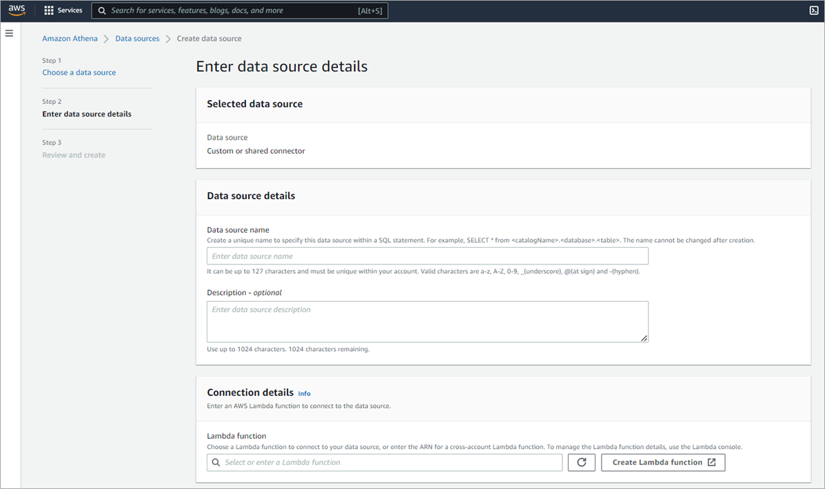 Figure 3 – Amazon Athena Custom Connector data source via Lambda function.