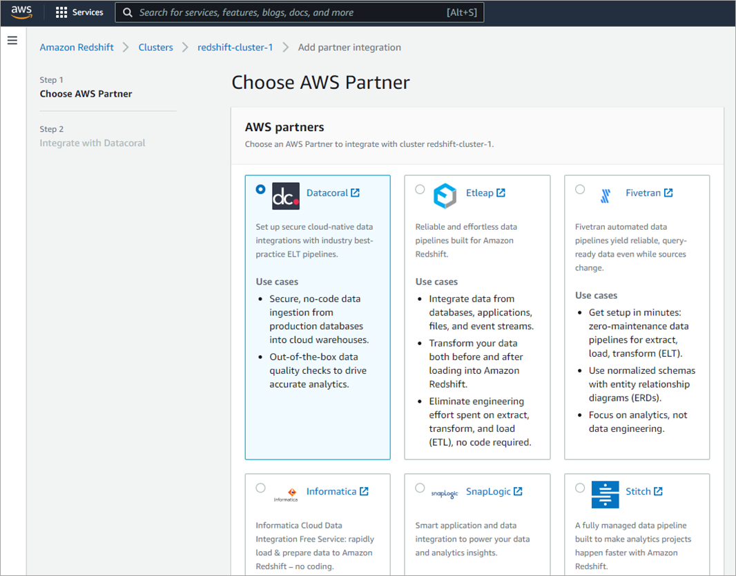 Figure 6 – Amazon Redshift partner integration.