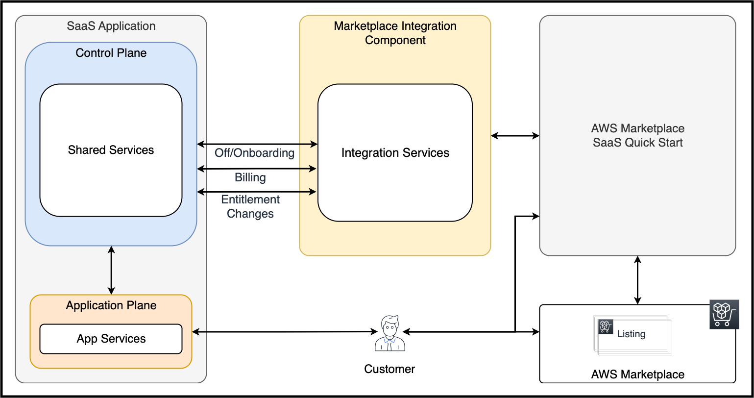 AWS Marketplace exposes a number of APIs you must integrate with as a SaaS provider. Fortunately, the quick start does much of this integration on your behalf. However, the quick start is a general integration solution, and requires additional code in order to get your specific SaaS application connected.