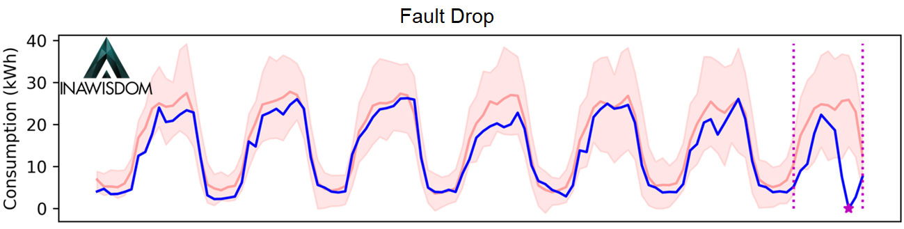 The uncharacteristic blip downwards is the 29th most significant anomaly; this triggers a classification procedure that has identified this pattern as a “Fault Drop.”
