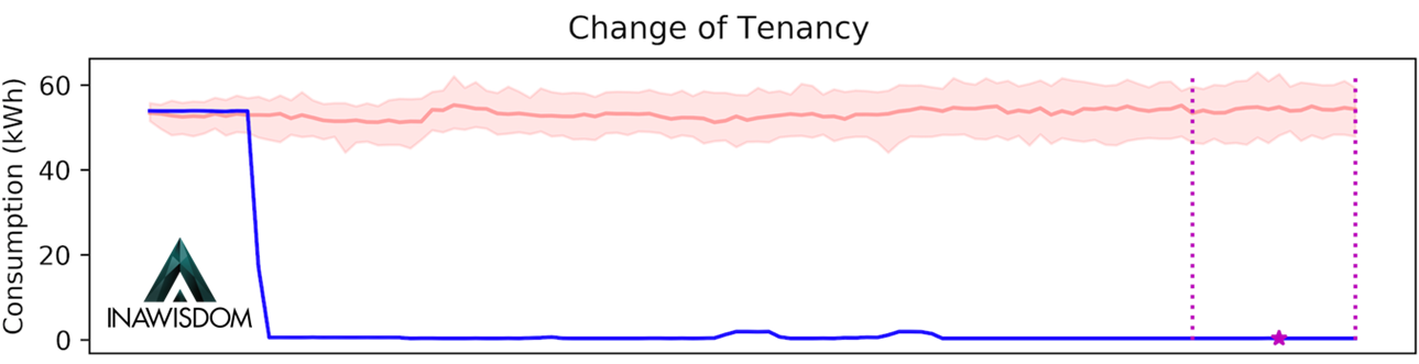 Another example of a detected anomaly is shown in Figure 2. This time, continuous uncharacteristically low usage triggered the class of “Change of Tenancy.”