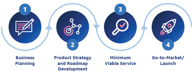 This guide is built around the four non-linear stages of the journey, including business planning, product strategy and roadmap development, minimum viable service, and go-to-market/launch. It should be used in conjunction with the SaaS Journey Framework, a whitepaper that offers deeper insights into the unique stages of the SaaS journey.