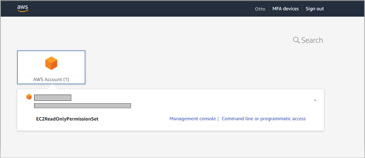 - Expand the associated AWS Account and confirm the EC2ReadOnly permission set has been granted.