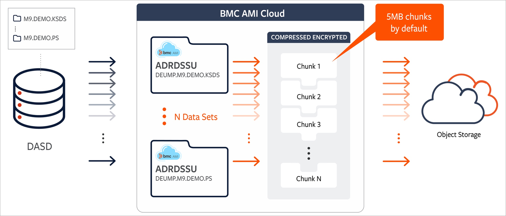 - Recovering all mainframe data from the cloud leveraging the parallel architecture of BMC AMI Cloud data transfer outlined in Figure 3.