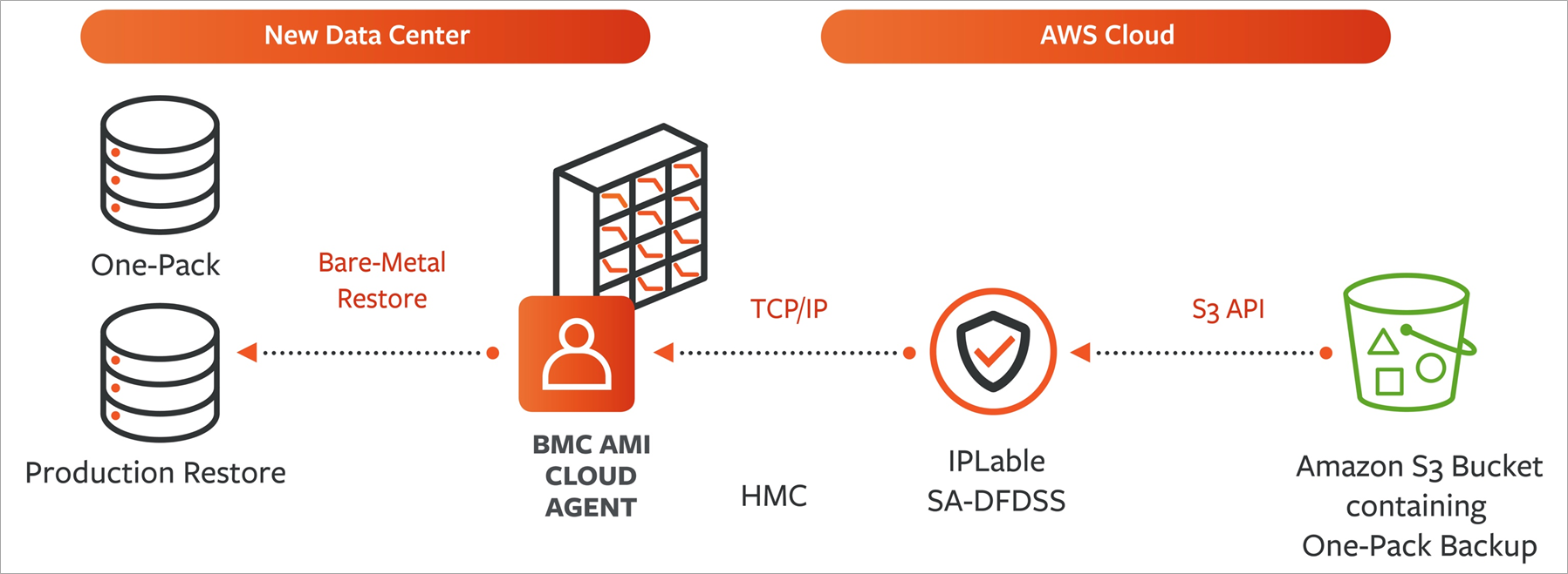 - Once the recovery system has been IPLed connect to S3 via the BMC AMI Cloud agent for data recovery from the cloud.