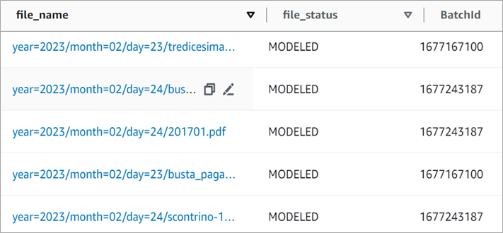 - year=xxxx/month=xx/day=xx/filename=xx/forms/forms.csv – (key,value) pairs extracted by Textract from forms