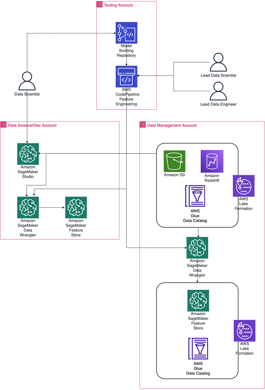 After the feature engineering process has been transformed into an automatable format and successfully tested, it has to be deployed into the data management account.