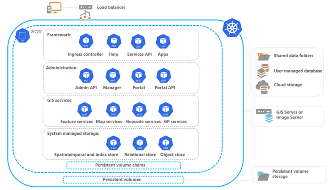 Larger mission-critical deployments traditionally tend to increase complexity and corresponding operational support requirements. With the new Kubernetes architecture for ArcGIS Enterprise, such deployments are easier to deploy, configure, and manage.