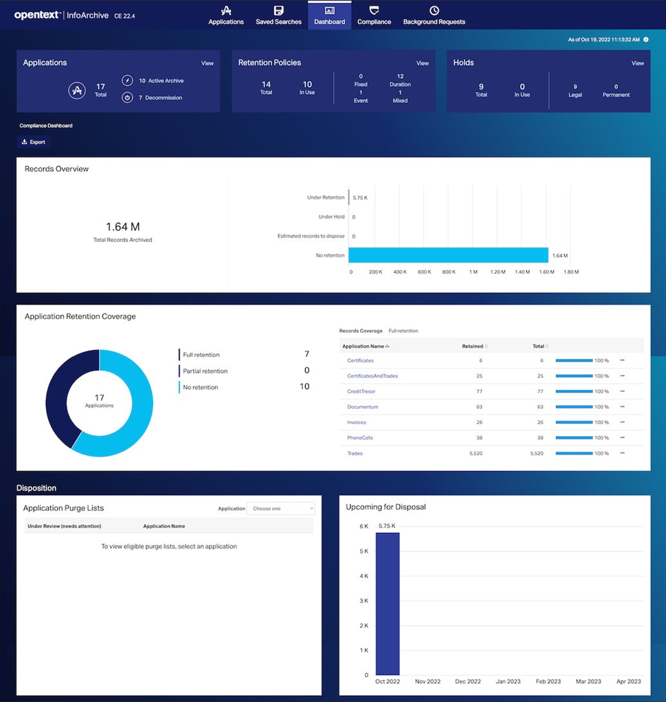 Figure 3 – OpenText InfoArchive compliance dashboard.