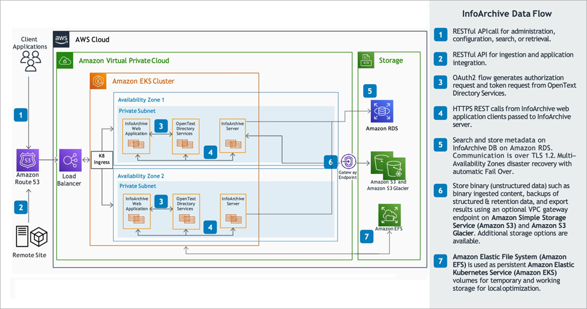Figure 4 – OpenText InfoArchive on AWS architecture using Amazon EKS.