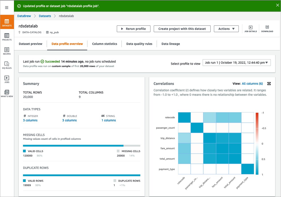 Figure 6 – AWS Glue DataBrew data profile.