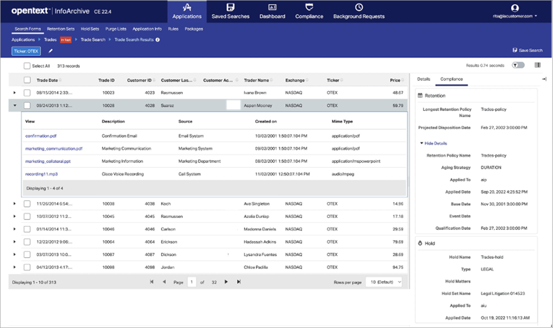 Figure 1 – OpenText InfoArchive data search.