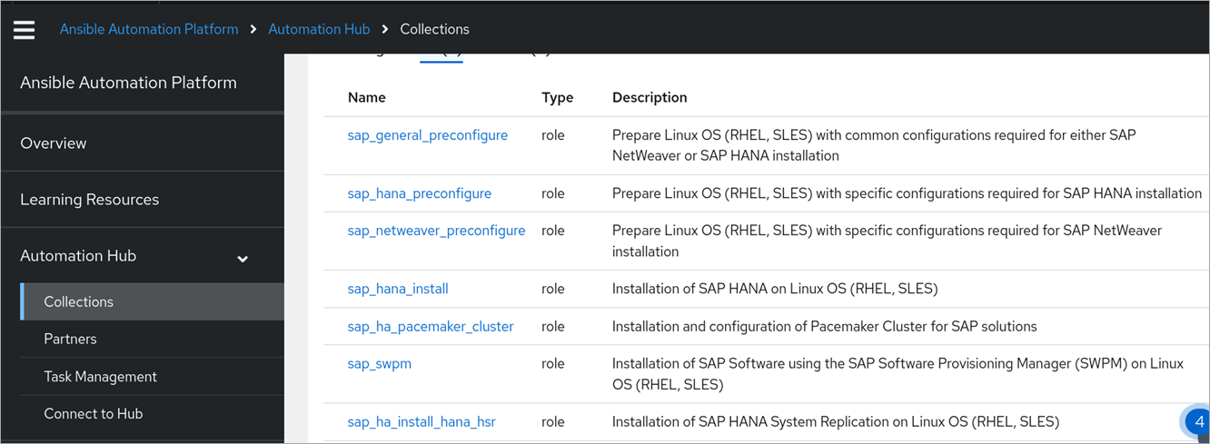 Figure 4 – SAP Day 1 roles available in Ansible Automation Hub.