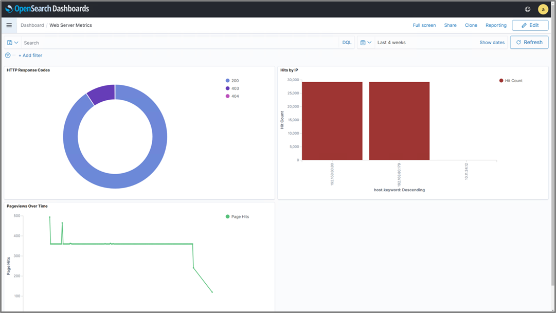 The combination of OpenSearch (an open-source tool for searching and analyzing data) and OpenSearch Dashboards (an open-source user interface for visualizing data derived from Kibana 7.10) creates a powerful mechanism for aggregating, monitoring, and visualizing application and server health.