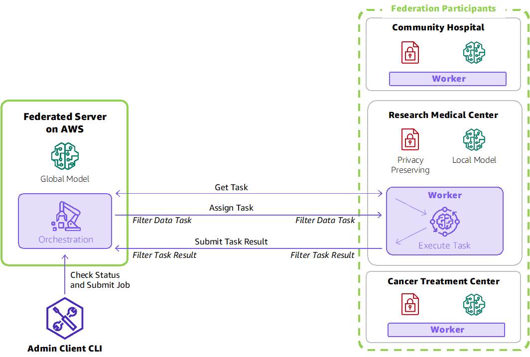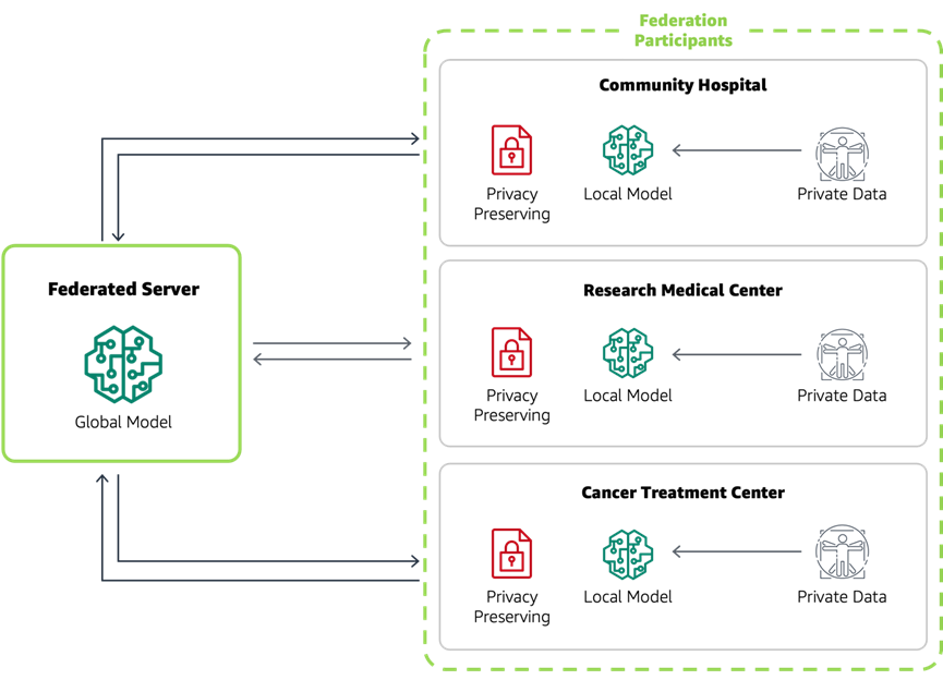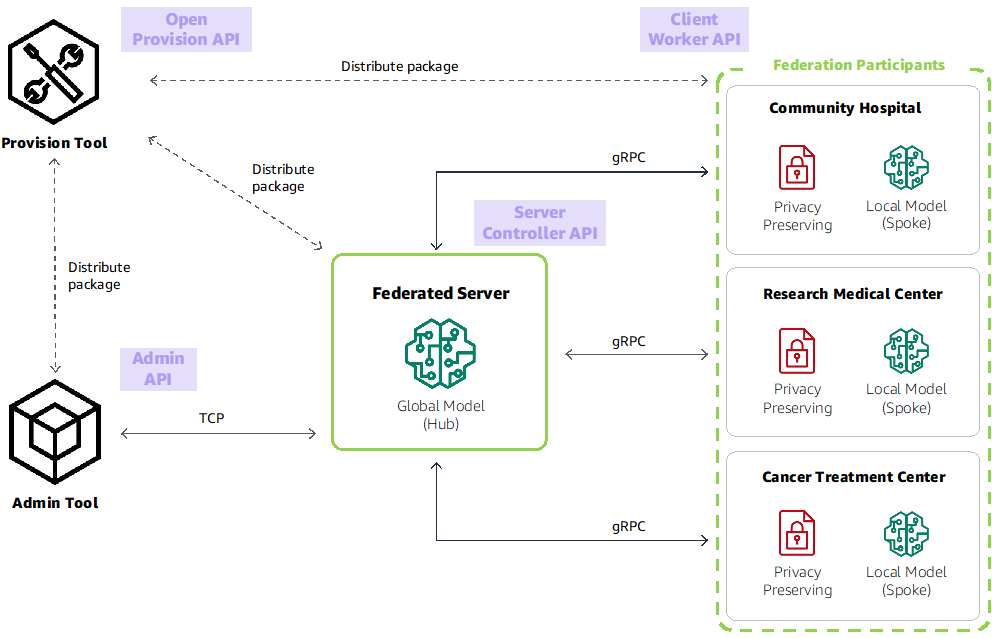 The NVIDIA FLARE (which stands for Federated Learning Application Runtime Environment) platform provides an open-source Python SDK for collaborative computation and offers privacy-preserving FL workflows at scale. NVIDIA is an AWS Competency Partner that has pioneered accelerated computing to tackle challenges in AI and computer graphics.