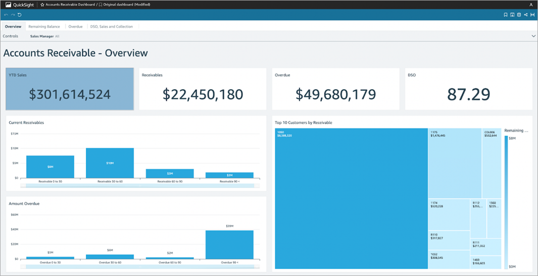 Figure 2 – Amazon QuickSight dashboard for accounts receivable.