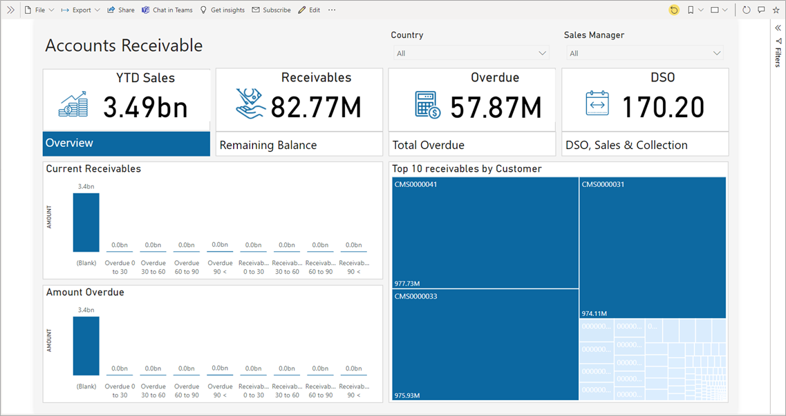 Figure 3 – Accounts receivable dashboard (Power BI).