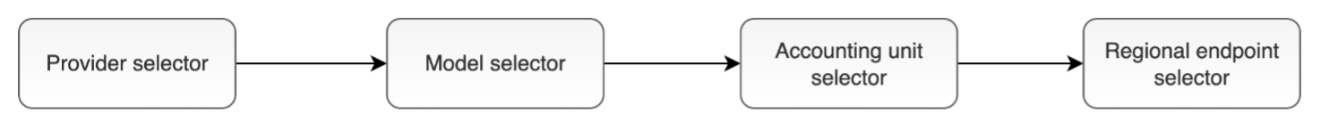 - Provider selection – You can integrate multiple model providers, including cloud and on-premises solutions. The provider selector automatically routes requests to providers with available endpoints.