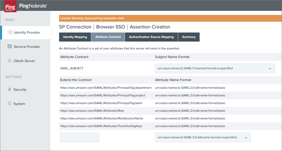 Configuring AWS session tag support in PingFederate is straightforward and simple. For SAML connections, the AWS service provider (SP) connection merely has to be expanded to include the session tag attributes.