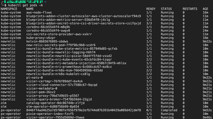 This add-on simplifies deploying Kubernetes observability components from New Relic to your EKS clusters, using programming concepts you’re already familiar with. Additionally, with Pixie built-in to the add-on as an optional component, you get observability using eBPF (Extended Berkeley Packet Filter) with no additional setup required.