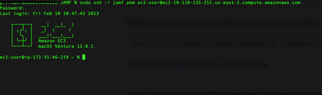 Next, connect to an Amazon EC2 Mac instance with a Secure Shell Protocol (SSH) client for secure operations.