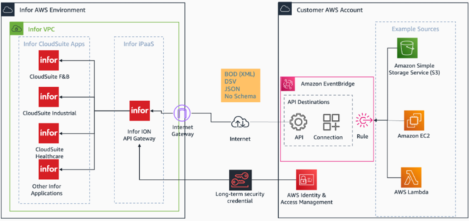 Infor is an AWS Specialization Partner and AWS Marketplace Seller that builds cloud-based industry-specific business software. Infor CloudSuite enable growth, reduce risk, support global ambitions. In this post, you will find strategies for common integration scenarios.