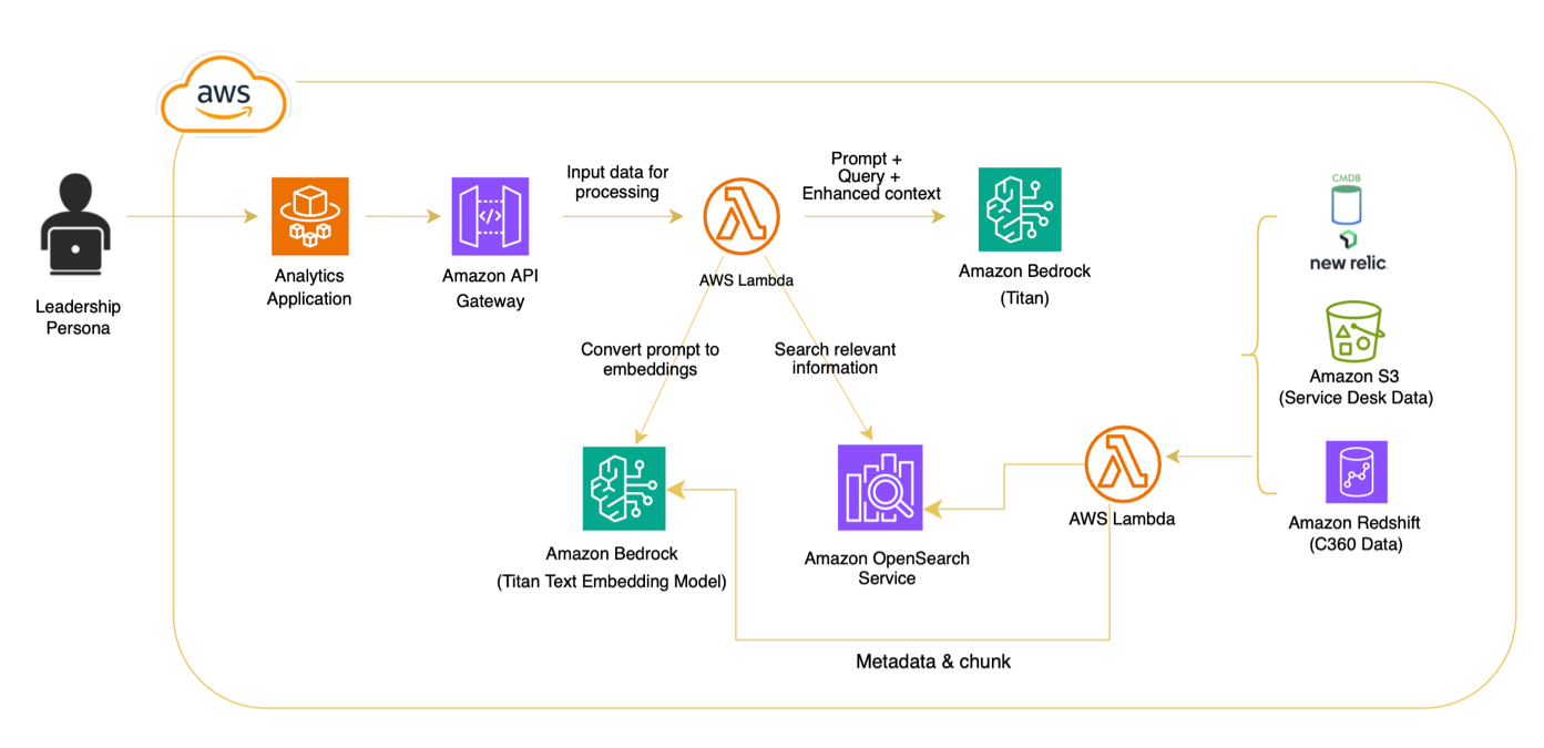 Furthermore, AWS provides a comprehensive suite of services, including Amazon S3, AWS Lambda, and Amazon DynamoDB, that integrate seamlessly with Amazon Bedrock. This has allowed Sapient to create a highly customized and scalable generative AI solution. Some key benefits of this approach include: