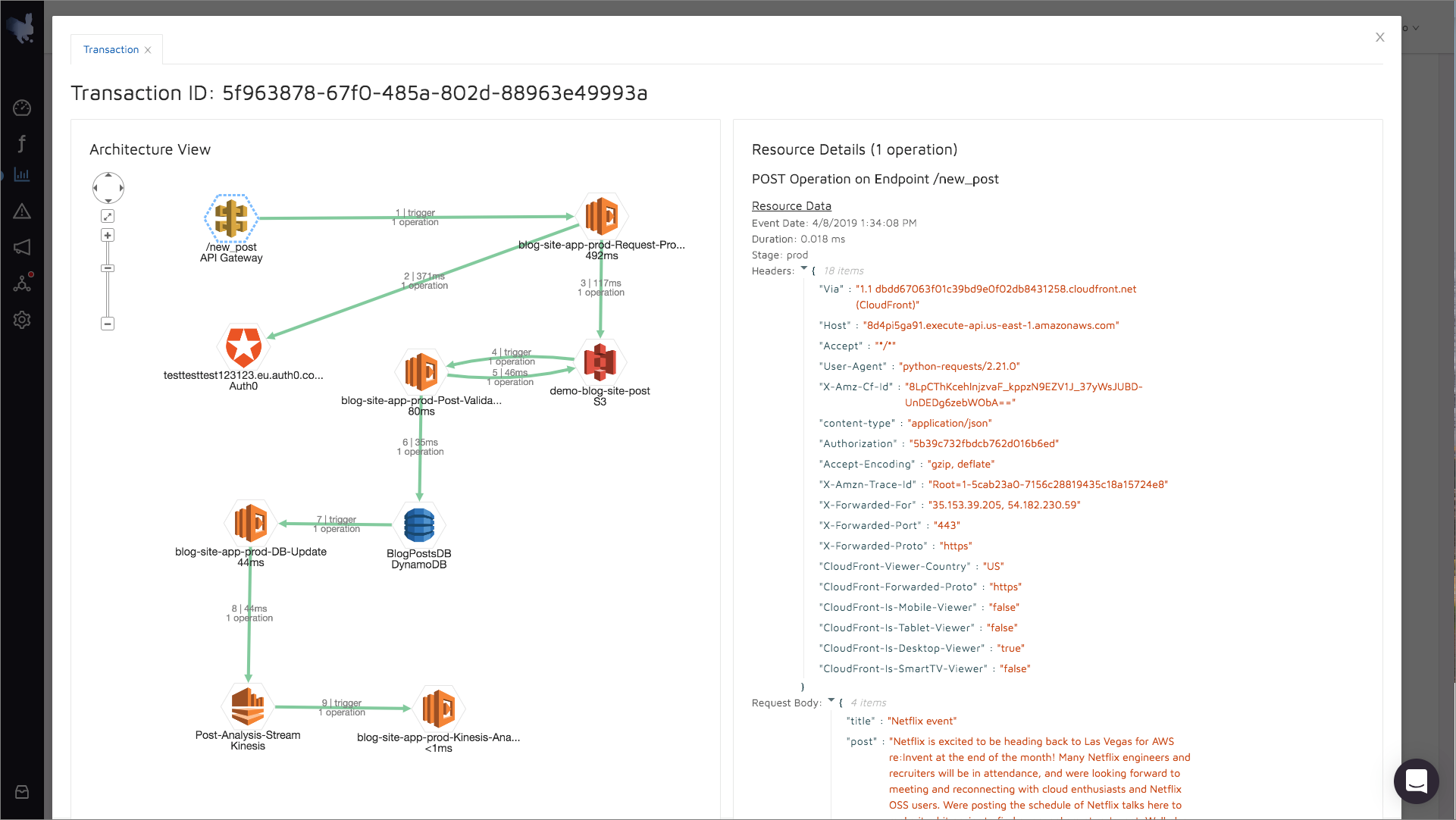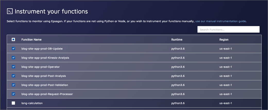 Epsagon offers a holistic approach to monitoring and troubleshooting serverless applications. By leveraging distributed tracing and automated alerting, AWS Lambda users can get an auto-discovery view of their entire architecture, with a minimal setup effort and no code changes.