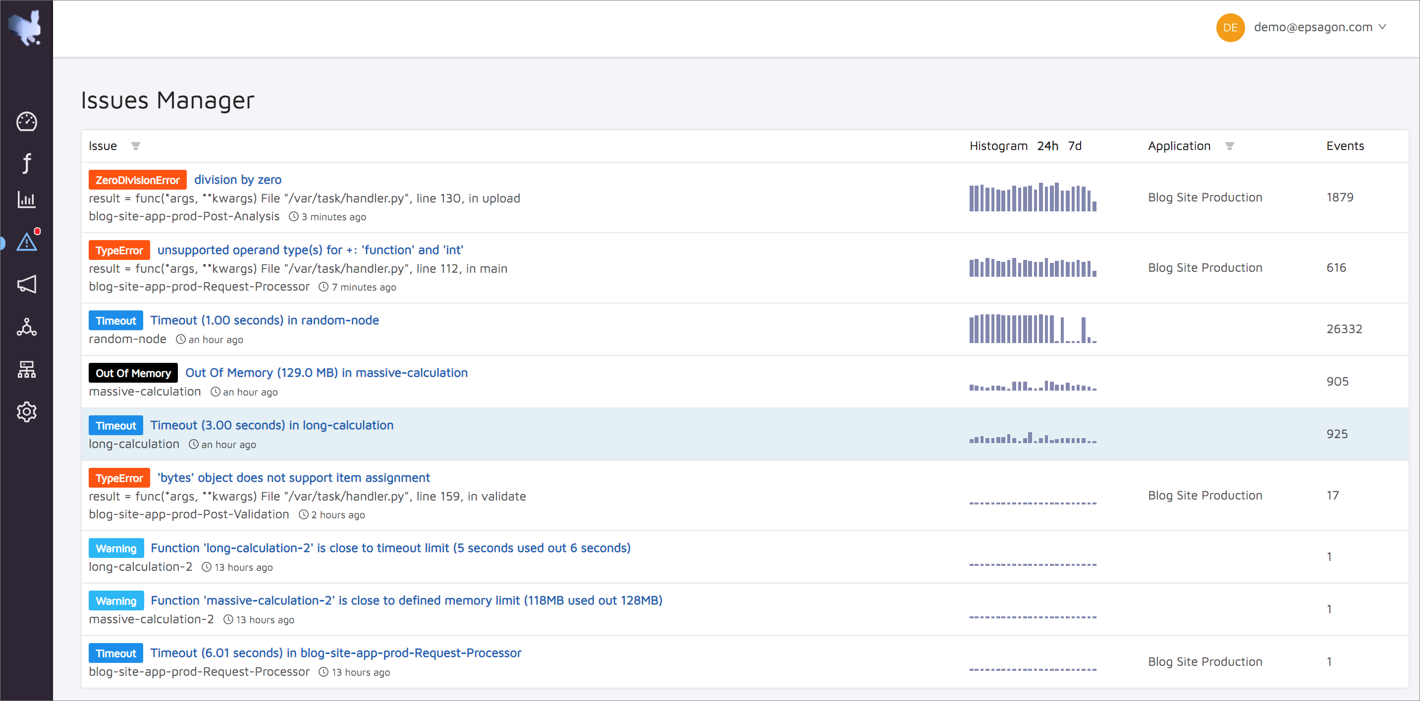 - Discover crucial issues in serverless applications that remained unknown before Epsagon.